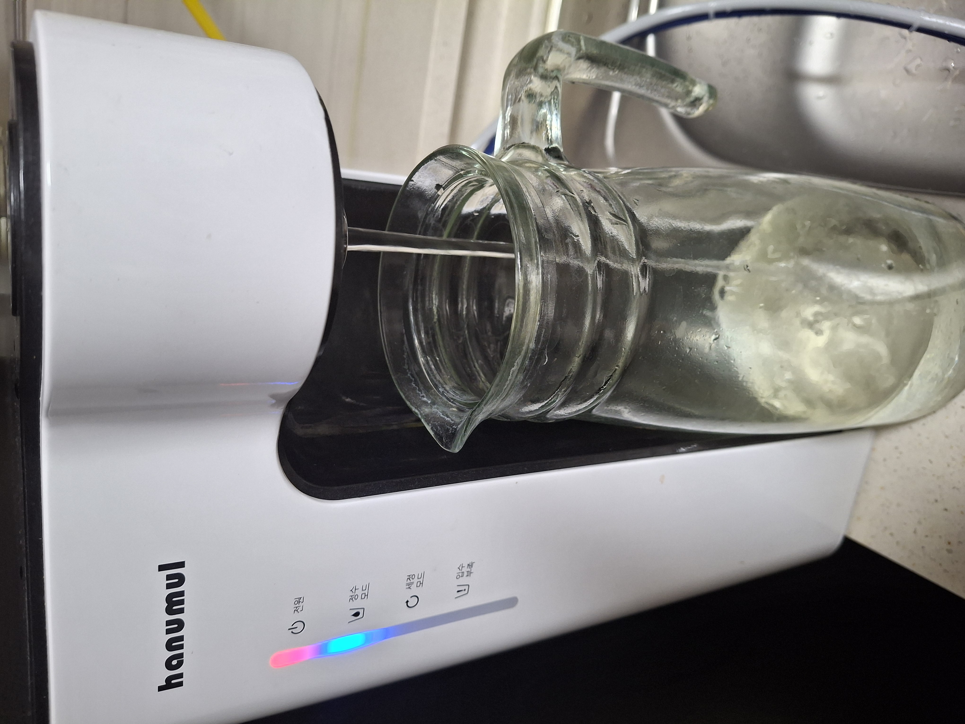정수기가 필요해서 검색하다가 우연히 알게 됐는데 전해 약알칼리수라는 단어에 이끌려서 폭풍 검색한 결과 한우물정수기에 반하게 돼어서 현재까지 고집스럽게 한우물 정수기만 15년 이상 사용중입니다. 국내유일 전기필터로 미네랄 함량은 높이고 중금속은 낮춰서 마음에 쏙 들었고 전해약알칼리수는 물 입자가 작아,우리몸에 미네랄 등 흡수가 잘돼고 물맛이 부드럽고 노폐물 배출이 탁월하다니 딱 내가 원하던 바로 그 정수기였습니다. 위생 관리도 참 편리했습니다.  사용량이 누적되었을 때와 장시간 사용하지 않았을 때 모두 자동 세척 기능이 작동하고, 덕분에 세균 번식도 억제됩니다. 그래서 항상 변함없는 맛있는 건강한 물을 먹을 수 있습니다.   미네랄이 풍부한 약알칼리수로 산성화된 몸을 올바르게 하며 항산화 효과가 탁월하다니  물만 수십년간 연구해 온 훌륭한 기업입니다 . TV에서 탑스타를 내세워 요란하게 광고하는 정수기들은 관심도 없고 눈에 들어오지도 않았습니다. 아직은 한우물정수기만큼 좋은 정수기는 없다는 생각이 확고합니다. 몇 년전에 남편이 저에게 자신의 친구가 대기업 정수기 회사에 다니는데 정수기 바꾸자고 하더라구요.  친구가 잘 해준다고 하면서요. 순간 잠시 흔들렸지만 바로 싫다고 했습니다.  정수방식이런것도 마음에 들지 않았습니다.  이 일로 잠깐 남편과 실랑이도 있었지만 한우물정수기에 대한 무한신뢰로 마음이 움직이지 않았습니다.   아침에 일어나자 마자 정수기 물 한잔은 저에게 하루를 여는 건강 루틴입니다. 내 몸에 장기들이 청소돼고 노폐물이 싹 빠져나가 건강 해 지는 그런 기분~   헬스장 갈 때도 집에서 꼭 정수기 물을 받아서 가지고 갑니다. 헬스장 회원분들이 저보고 유난하다고 합니다. 전기세도 많이 안 나오고 가성비가 너무 좋습니다.  한우물 정수기! 고맙고 영원히 함께 하자!! ? ? ? ? ? ? ? ?