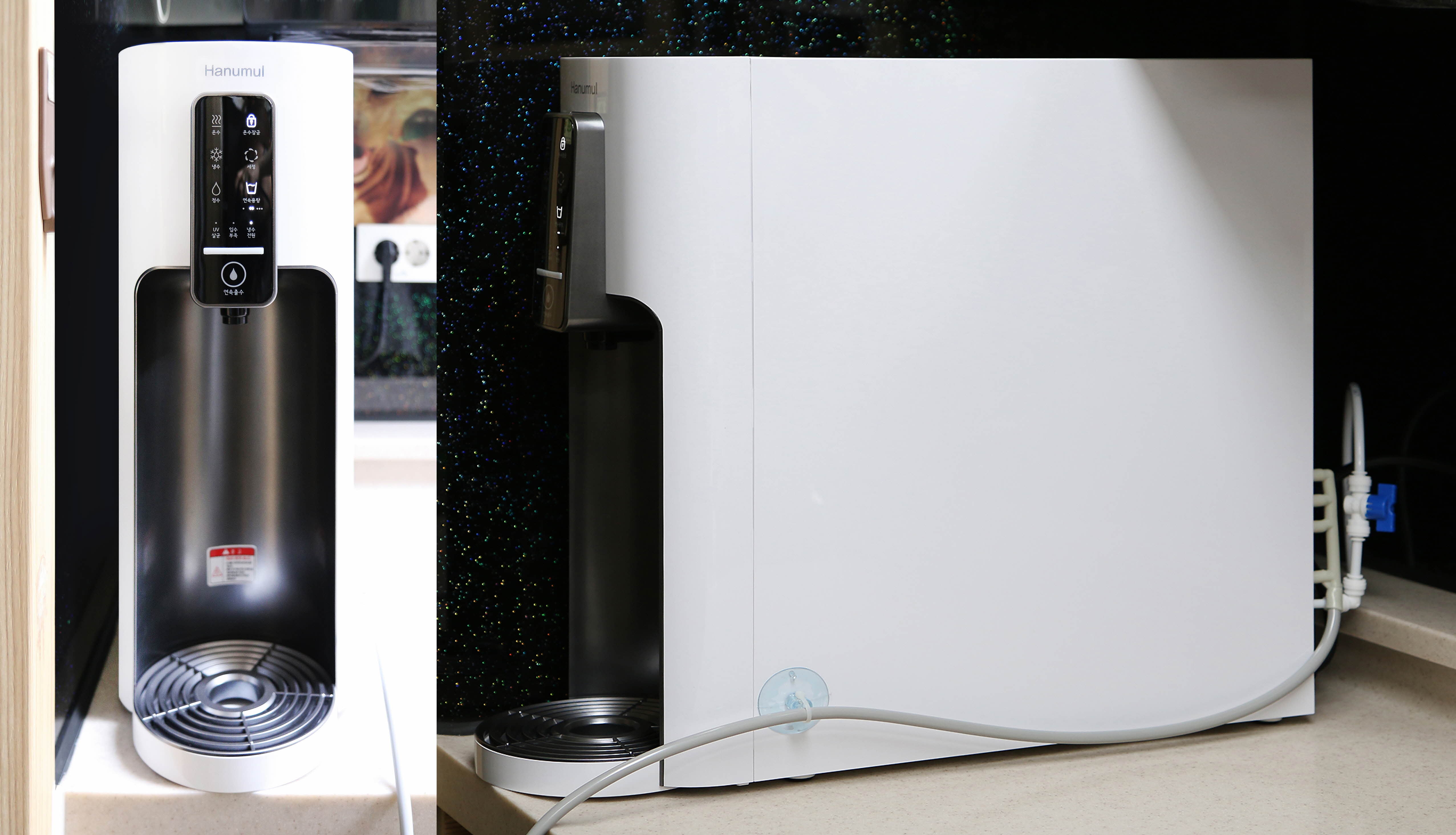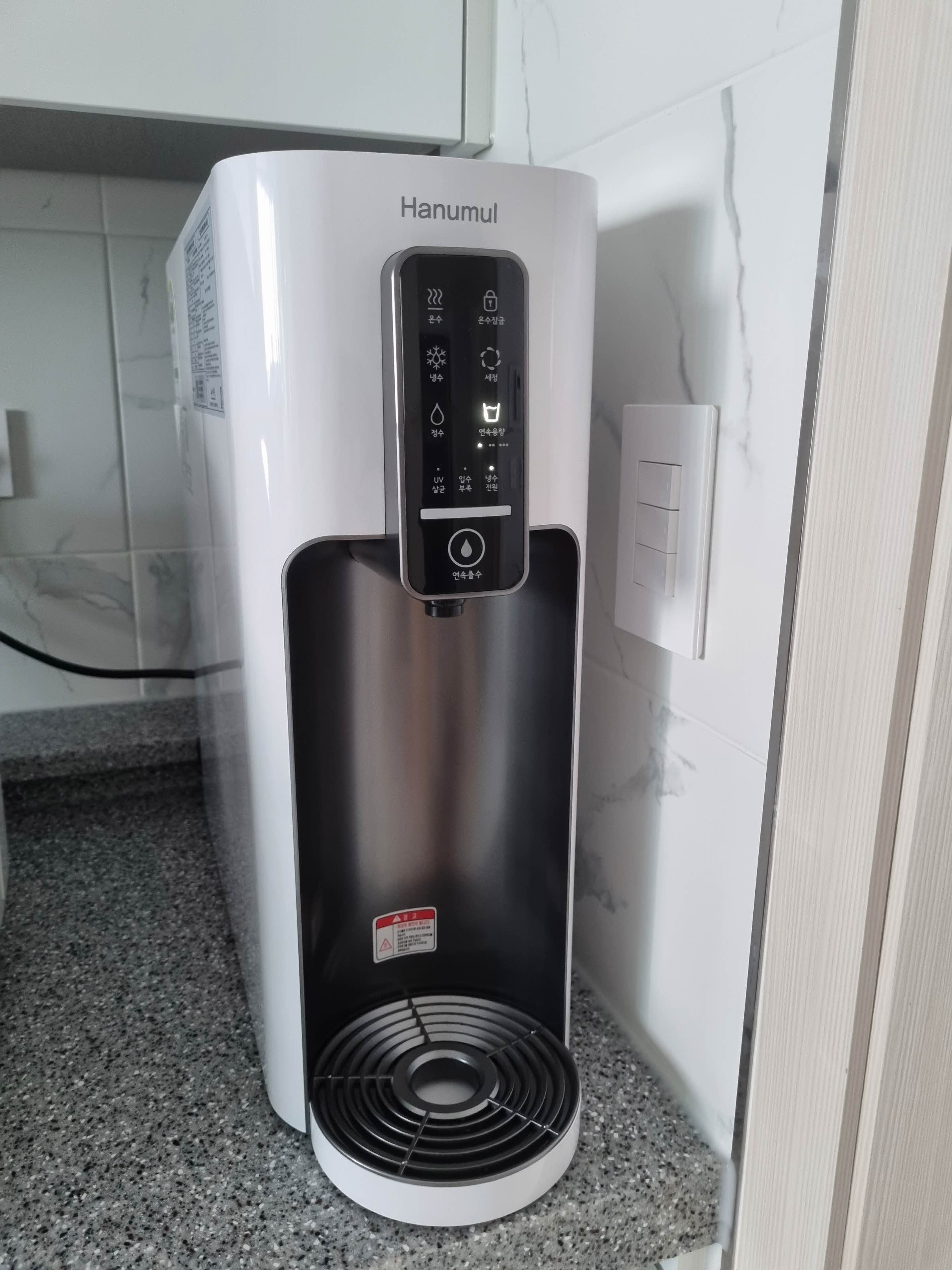 Hi, 깸미 등장 :)안녕하세요! 유부 깸미입니다???오늘은 고심끝에 결정한 ‘정수기’리뷰 입니다!양가 어머니께서 ‘미네랄물‘에 대해 이야기 해주셔서열심히 알아본 끝에 ’한우물 정수기‘를 만날 수 있었습니다!???바로 시작합니다!???? @ 한우물 정수기(냉수, 온수, 정수 / HAN-ICH2000)? 한우물 정수기 높이가 높긴하지만 (가로세로 17*48) 컴팩트해서 주방 한 켠에놓기 좋아요!우선 디자인은 합격!????? 한우물 정수기 드롱기 커피머신 옆에 있으니 웅장하긴 하네요??? 출처) 한우물 정수기 홈페이지 정수만 or 냉온수가능고민고민하다가 오래 사용할 예정이기에먼 얘기..지만..ㅎㅎ추후 애기 분유탈 상황까지 고려하여??냉온수로 선택했습니다!?설치비는 무료,매달 렌트비도 이벤트와 카드를 통해할인받을 수 있었습니다!(변동이 있을 수 있으니 자세한 사항은 상담을 이용해주세요!)? 한우물 정수기 설치기사님께서 오셔서 설치해주셨습니당????냉온수 정수기는 순간적으로 물을 차갑게, 뜨겁게 만들기때문에단독 콘센트를 사용하는게 좋다고 하셨고,?단점이라고 한다면 호수입니다!노랑,파랑,검정 호수로 원래 분리되어산성수, 강알칼리수, 버리는물로 따로 배출되는데이때 각각의 물들을 세안, 식물에게 주는 용도 등으로 활용할 수있습니다!?하지만 매번 따로 받아서,,, 사용할 것 같지 않기에^^,,하나로 합칠 수도 있다는 기사님 말씀에 냉큼 합쳤습니다!합쳐서 흘려보내도록 설치 완료!?????설치 후 기사님과 서류작성 후사용법을 알려주셨고, 가져오신 시약으로알카리물과 수돗물을 비교해주셨습니다!? 한우물 정수기 정수 터치!한 번에 약 150ml정도의 물이 나옵니다.딱 한컵 마시기 좋은 양이 나와서 만족??? 한우물 정수기 ??아이들이 있는 집은 필수죠??온수잠금 기능도 있어서 아주 마음에 드네요ㅎㅎ온수의 경우 끓는데에 시간이 약간 소요되어나오는데까지 약간의 시간이 필요하더라구요!? 한우물 정수기 왼: 정수 / 오: 온수비슷한 양으로 잘 나오네욤??????? 한우물 정수기 연속용량도 가능합니다!점 하나는 500ml점 두개는 1L점 세개는 1.5L500ml용량 단위로 받을 수 있어 편리한 것 같습니당500ml마다 띵~ 하는 소리로 알림도 해줍니다ㅎㅎ????? 한우물 정수기 연속용량 사용하는 방법은용량 정해서 눌러주신뒤~ 연속출수 터치~ 온수/냉수/정수 선택!해주시면 쭈욱- 잘나옵니당??? 한우물 정수기 받침대도 분리가 가능해서 웬만한 물병은 다 가능합니당? 한우물 정수기 세정! 불빛들어온거 보이시죠!?알아서 필요할 때마다 자동으로 세정되니 아주 편리한 것 같습니닷? 한우물 정수기 정수기 사용하면 전기세도 걱정되는데에너지소비효율등급도 1등급이라 굳굳????대한 아토피협회 추천제품이라고 하네욤!!?? 출처) 한우물 정수기 홈페이지 아! 또 FDA에 의료기기로 등록되어있다고 합니당? 출처) 한우물 정수기 홈페이지 한우물 정수기의 이중전기분해 프로세서 라고 합니다!??기분탓일까요ㅎㅎ 물맛도 맛있는 것 같아요!???필터 주기는 1년이고 1년되기전에 해피콜도 해주신다니넘 좋은것~~?????????????건강한 물 마시고 건강하쟈!???????? 한우물 정수기, 직수정수기, 미네랄, 정수기필터, 정수기렌탈, 냉온정수기, 미니정수기, 미네랄워터, 수소수, 알카리수, 정수기설치, 냉온정수기렌탈, 냉온수기, 정수기추천, 미네랄효능, 정수기브랜드, 알칼리수, 직수정수기렌탈, 정수기렌탈가격비교, 정수기구매 hanumul.co.kr ? ???
