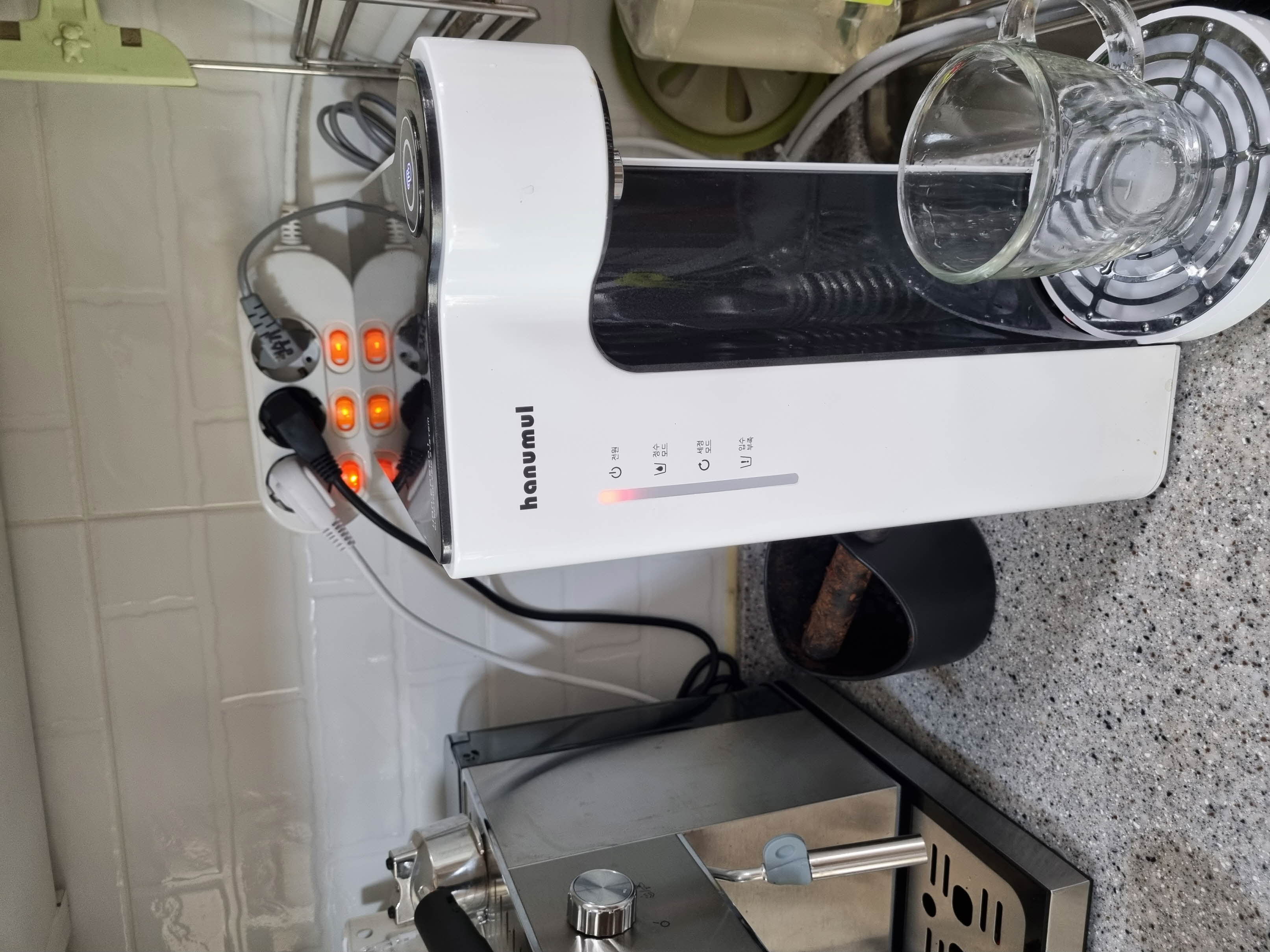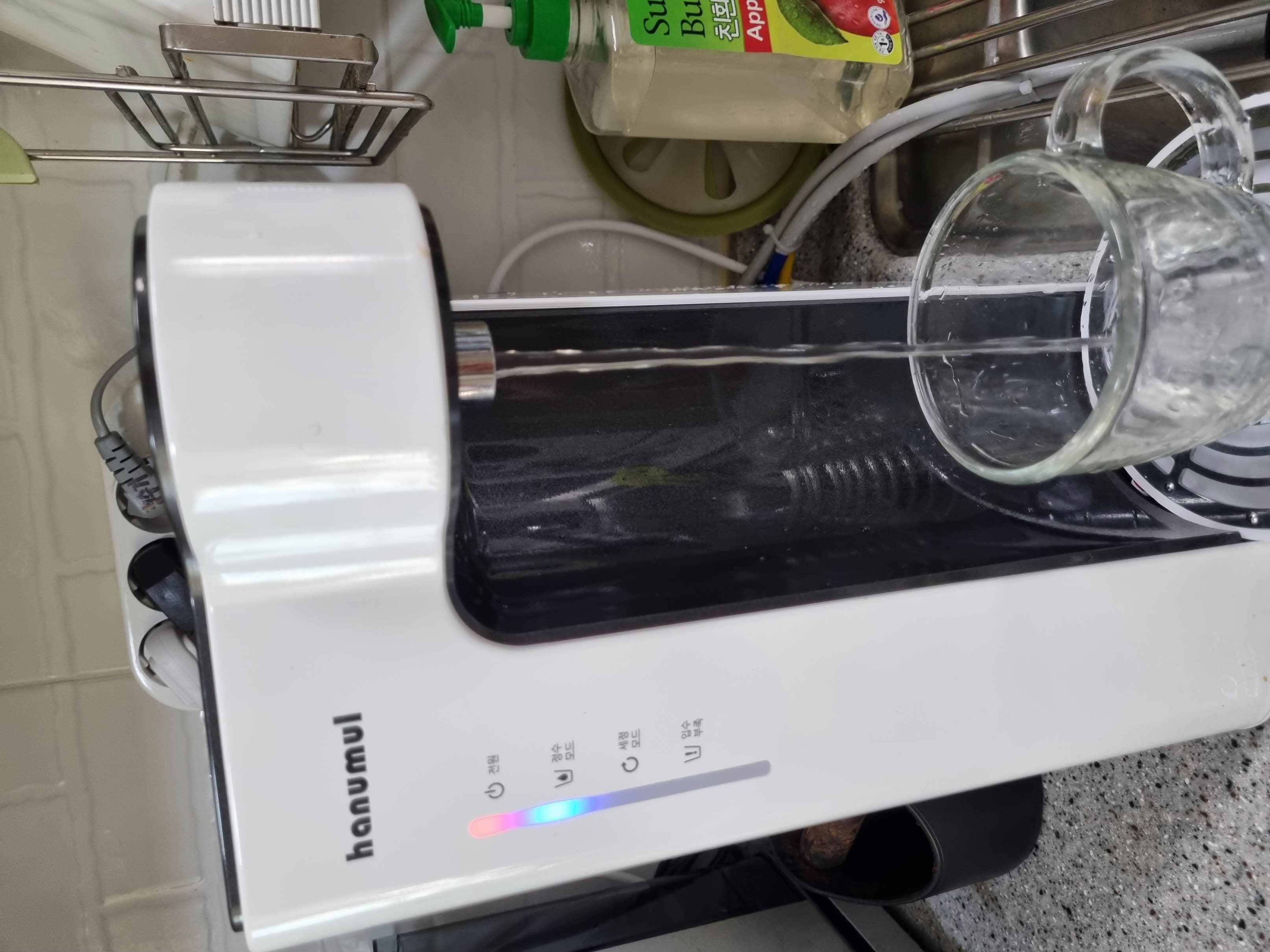타사 정수기를 렌탈로 사용하고 있었는데 우연한기회에 수질검사 테스트를 할 기회가 있어서 해봤더니 웬일 ㅠ.ㅠ 나름 큰 회사였는데....몇가지가 부적합으로 나와서 충격 있고, 또 그쯤 울 큰애가 발등에 아토피가 생기기 시작했어요~발등에서 시작하더니 뒷다리. 무릎 접히는곳. 장난아니게 심해지더라고요~그래서 검색해보고 기사 찾아보고 나름 고생끝에 찾아낸 한우물정수기... 그때부터 계속 수시로 물 마시게 하고 노란호수로 빠지는 물로 씻기도 통에 담아서 미스트처럼 뿌려주고~개인적인 소견이지만 확실히 덜 긁더라고요~ 지금은 아들이 성인이 되어서 아토피는 없지만 물맛도 맛있고... 다른 제품과는 비교할수 없기에 계속 사용하는 중입니다. 그런데 지금까지 잘 사용해오다가 이젠 예전의 부속품이 나오지 않아서 이번에 직수형으로 보상판매 교체 했어요~물 받으면서 대기하는 시간 없이 바로 나와서 편하네요 ㅎㅎ