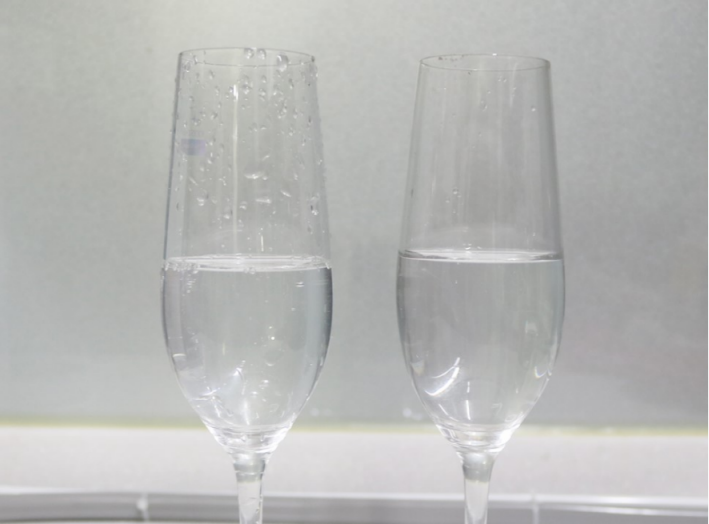 왼쪽은 일반 물, 오른쪽은 알칼리수 확실히 차이가 눈에 보이시나요?