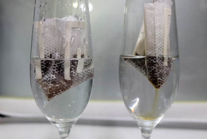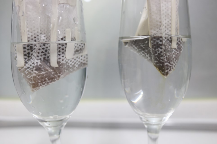 오른쪽은 흔들지 않아도 커피물이 티백 밖으로 나와있어요.