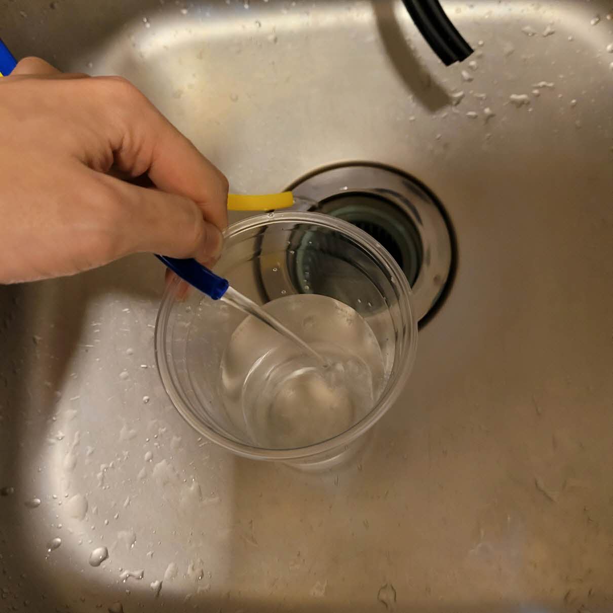 방법은 컵에 물을 담고 시약을 떨어뜨리고 물의 색 변화를 관찰하면 되는데요.