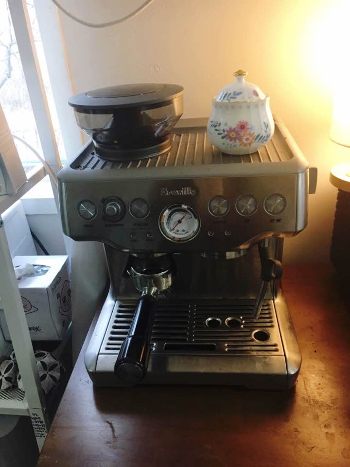 브레빌 커피머신의 물통. 높고 크기가 긴 편인데요.