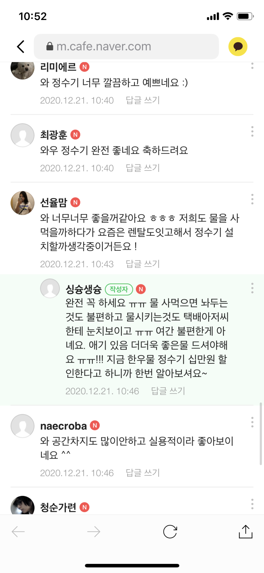 Home > 좋은물 이야기> 사용후기