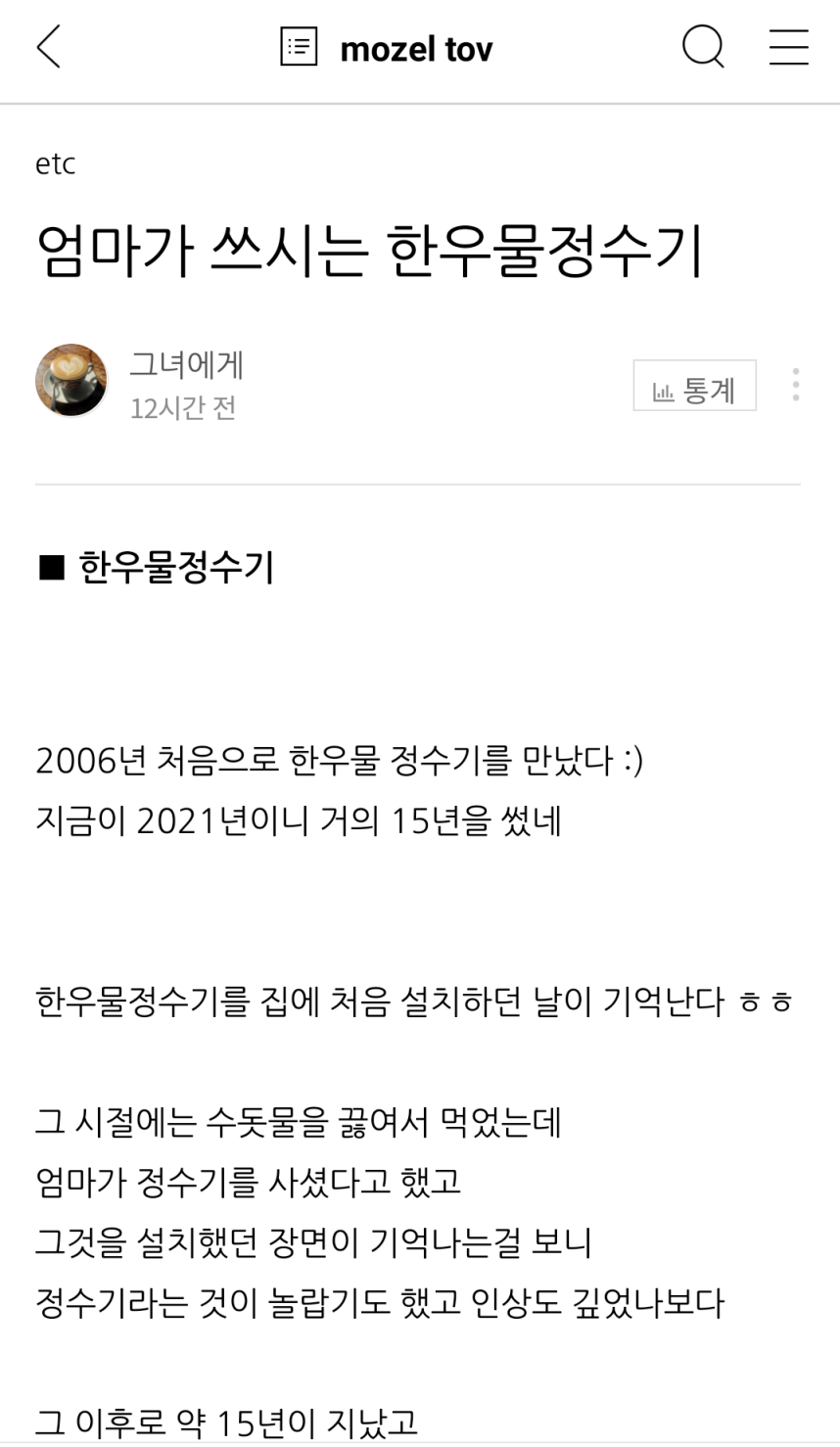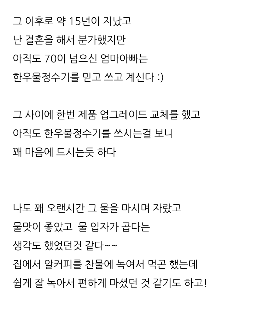 15년째 엄마와 함께하는 한우물정수기.감사해요