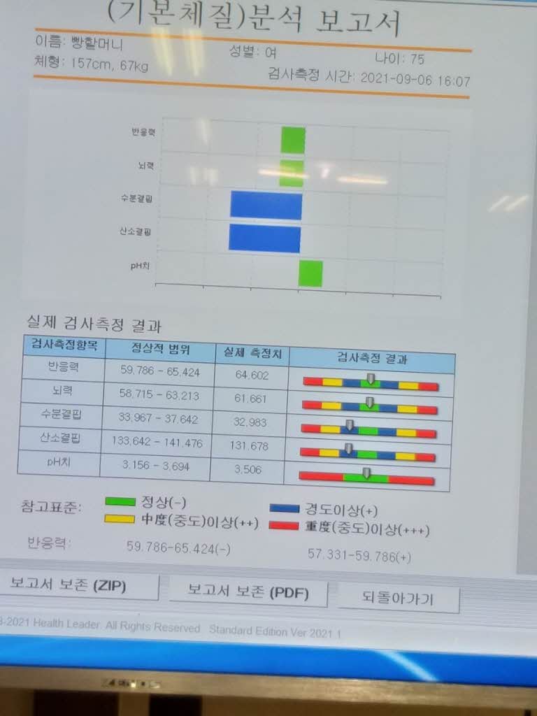 그분은 체질이 '약알카리'로 나온것 말고도 다른 부문의 분석결과도 거의다 건강하다고 나온거에요.(참고로 그분은 저보다 5살 어리지요)