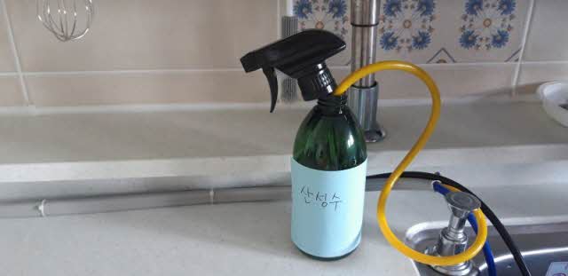노란 호스에서 나오는 산성수는 받았다가 샤워 마지막에 끼얹거나 분무기에 넣어 샤워 후 물기 닦은 상태에서 온 몸에 뿌리는 방식으로 사용 중이다. 확실히 피부에 도움이 된다. 보습, 피부 유연화 등에.