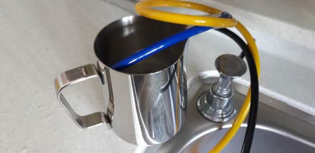 물을 받고나면 정수기가 알아서 세정모드로 들어간다.