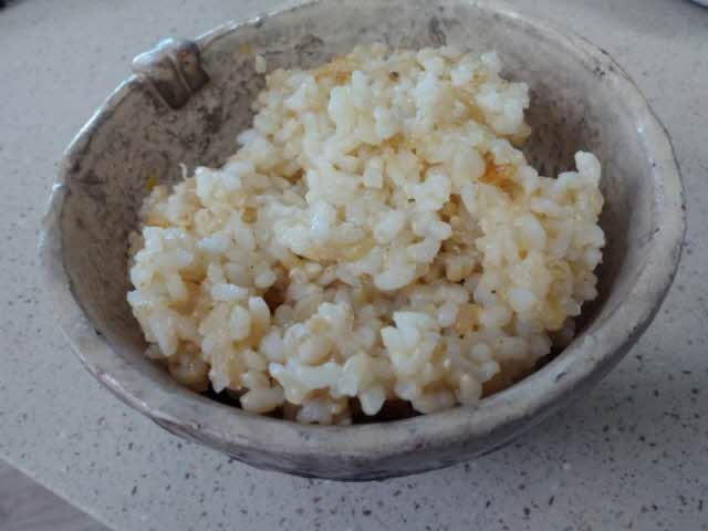 오늘은 약알칼리 물로씻은 오분도미 위에 씻어나온 발아현미를 섞었다.