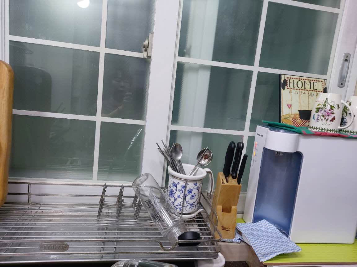 창틀에 정수기를 올려 놓으니 더 깔끔하고 쓰기 좋고 공간이 여유가