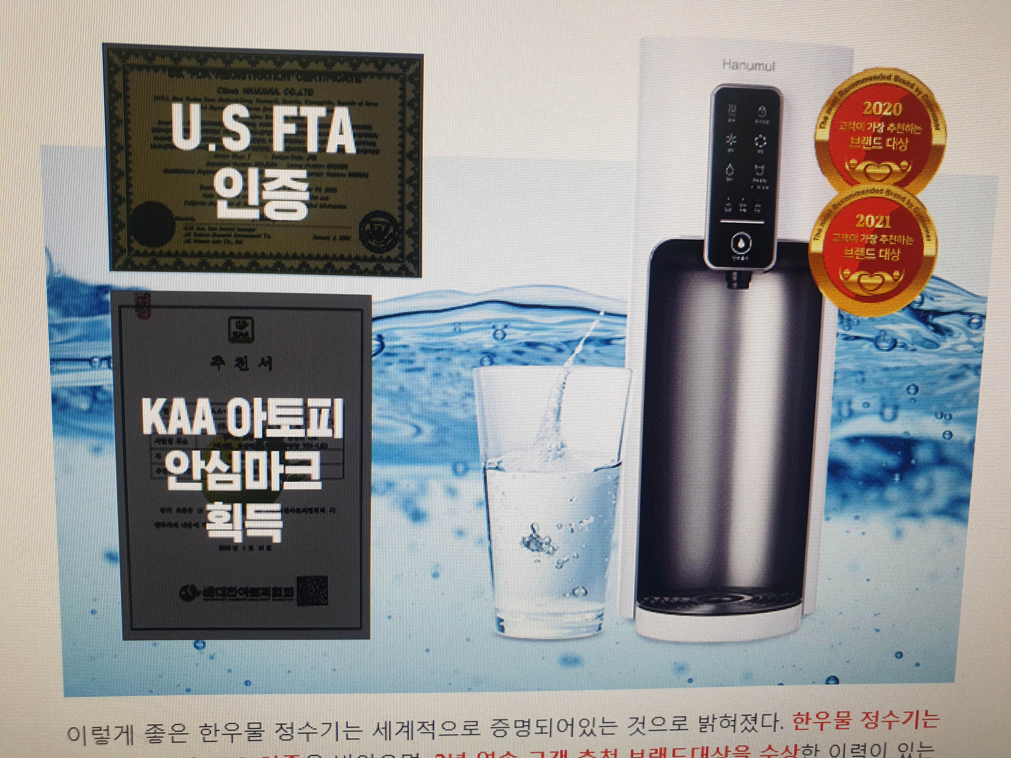 삼성은 물론 엘지,sk,쿠쿠 등의 회사에서 일반정수기 얼음정수기등 제각각의 장점들을 지닌 제품들이 많은것에 또 한번 놀라기도 했고 나름대로 검토를 해본결과 일반회사들도 마찬가지로 렌탈을 많이하고 사용을 하고있는 청호나이스 제품을 써볼까하고 생각하던중 우연히 유투브에서 광고하는 한우물 이라는 이름을 본순간 정말 오래전에 처음 개발했다고 광고를 하던것이 생각나 관심을 가지고 검토를 했지요.