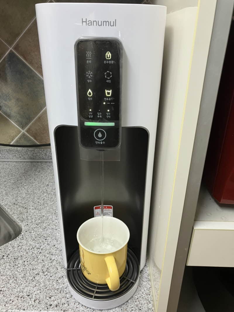 이번 직수정수기는 버튼만 눌리면 자동으로 물이 나오는 게 좋은 것 같습니다.