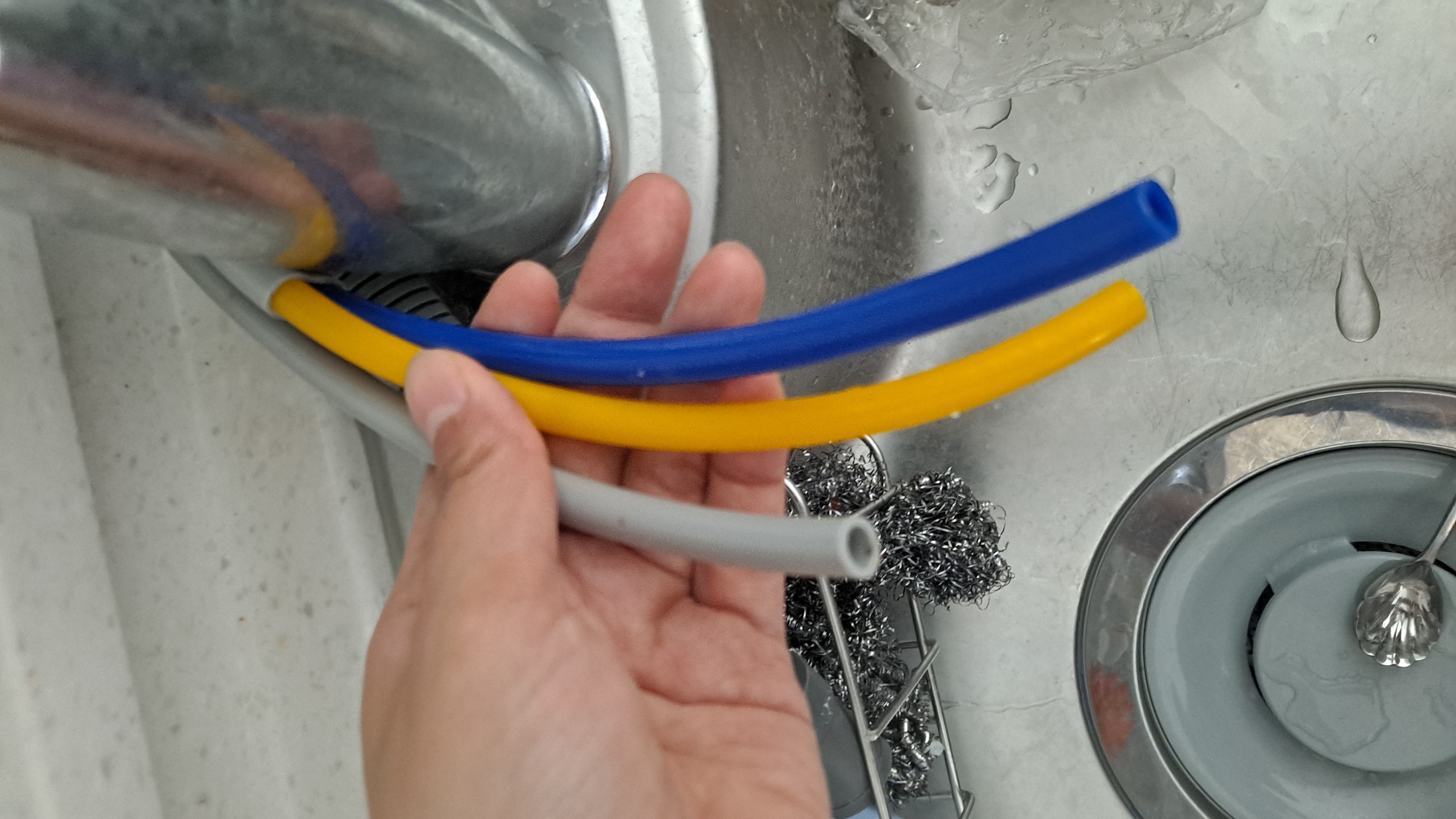 기본 약알칼리 물이 나오고 싱크대 쪽으로 호스가 3개 더 있어요 그 중 하나는 산성 물, 다른 하나는 강알칼리성, 나머지는 정수기 청소한 물이 빠져 나가는 호스더군요.