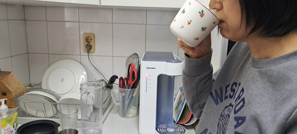 집으로 돌아온 저는 TV를 보고 있는 남편에게 한우물 정수기를 설치하자고 했어요마침 기존 정수기의 약정이 끝나 위약금 부담도 없는 터였죠남편도 흔쾌히 동의해서 우리는 바로 한우물 정수기를 설치했어요.